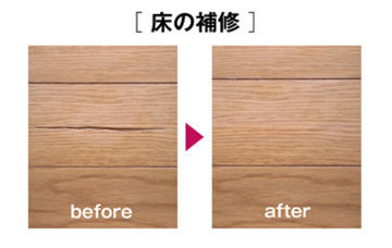 壁紙のはがれの部分補修や、破損した石膏ボードを石膏系補修剤で埋め、壁紙を貼ることでほぼ元どおりの状態に復元します。床のピンポイント補修