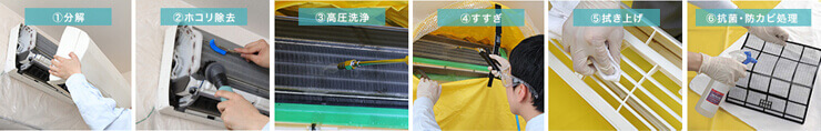 エアコンの分解から、抗菌・防カビ処理まで、1つひとつの行程をプロがきめ細かく実施!